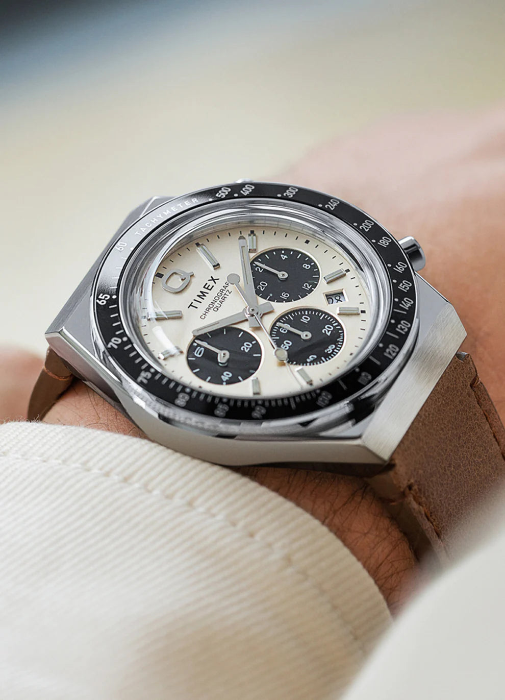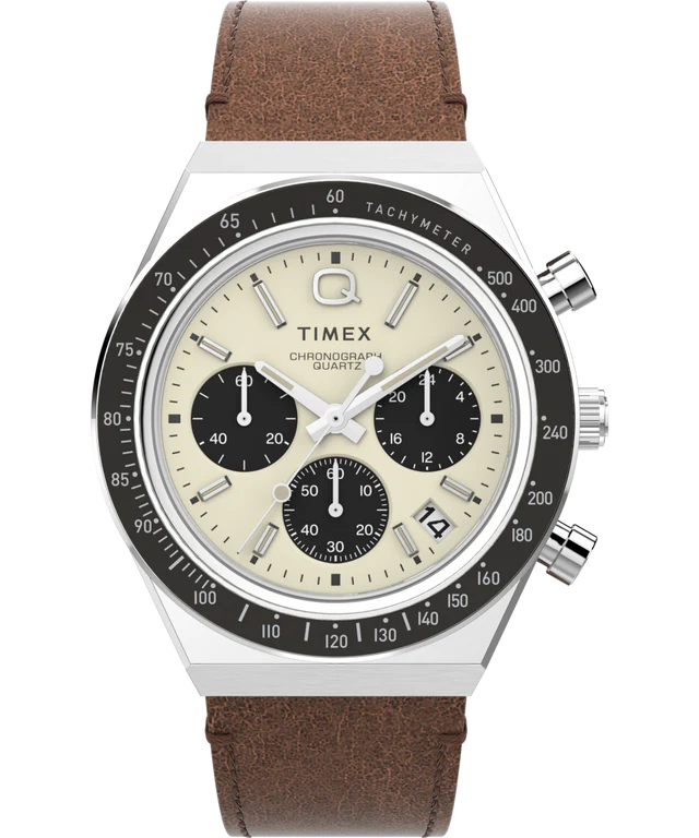 Q Timex Chronograph 40mm Leather Strap Watch
